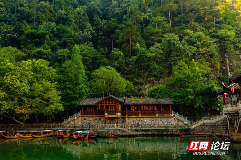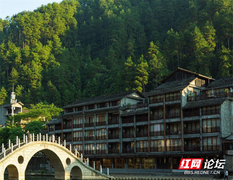 南华山国家森林公园位于凤凰古城南侧,平均海拔500到1000米,总面积约2240公顷,呈月牙形环抱凤凰古城。清澈的沱江水穿城而过,公园的自然景色与众多人文景观遥相呼应,形成一幅古城在森林中、公园在城市里的古朴典雅的神奇画卷。