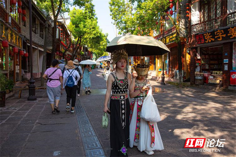 辛勤的凤凰人,在日新月异的发展中适应着世界的变化,骨子里渗透出沈从文的铮铮铁骨。他们精心打理自己的小店,努力赚钱改善生活。他们在乌篷船上,在吊脚楼内,用和善的微笑与精美的菜肴招揽游客,以此维持一家开销。他们或带团当导游,或料理乐器店,尽力将生活水平提高。凤凰古城依然是美好的,它向人们展示什么是人间烟火。