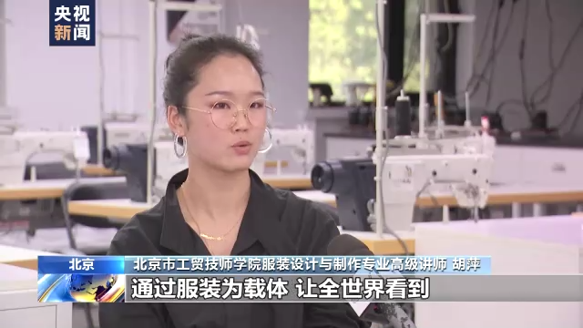 北京市工贸技师学院服装设计与制作专业高级讲师 胡萍:把中国的设计、中国的文化通过服装为载体,让全世界看到。作为一名中国优秀的设计师,一是要有传承自己文化的一种担当,第二一定要有一种创新的意识。