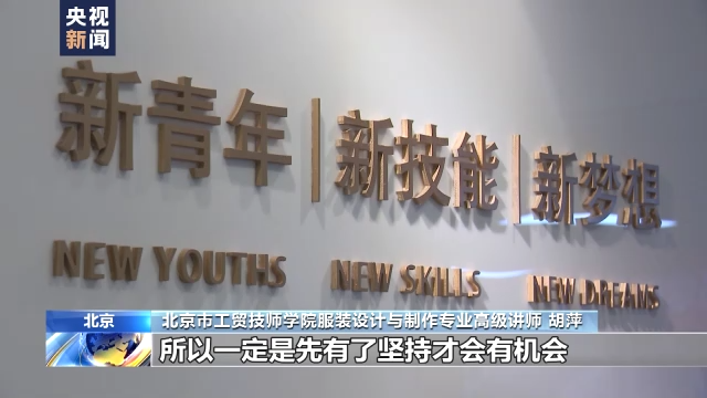 北京市工贸技师学院服装设计与制作专业高级讲师 胡萍:走技能之路同样能实现自己的梦想,虽然过程很辛苦,你只有坚持才能够把握住机会,所以一定是先有坚持才会有机会。