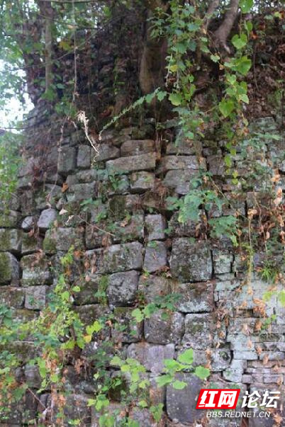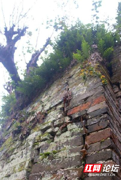 城墙被植被覆盖,不仔细查看,很难发现。城墙青砖平整有序,紧密啮合。那个年代石灰紧缺,古人为使城墙坚固,沙浆往往混合糯米浆,增加黏合度砌砖。
