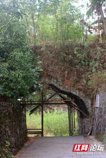 城墙上,蔓萝覆盖其上,树根潜入砖石泥土,坚实牢固,古朴雄伟。一道拱门连通东西,竹林修篁,野花缤纷,鸟声唧啾,置身其中,抒怀忘俗。
