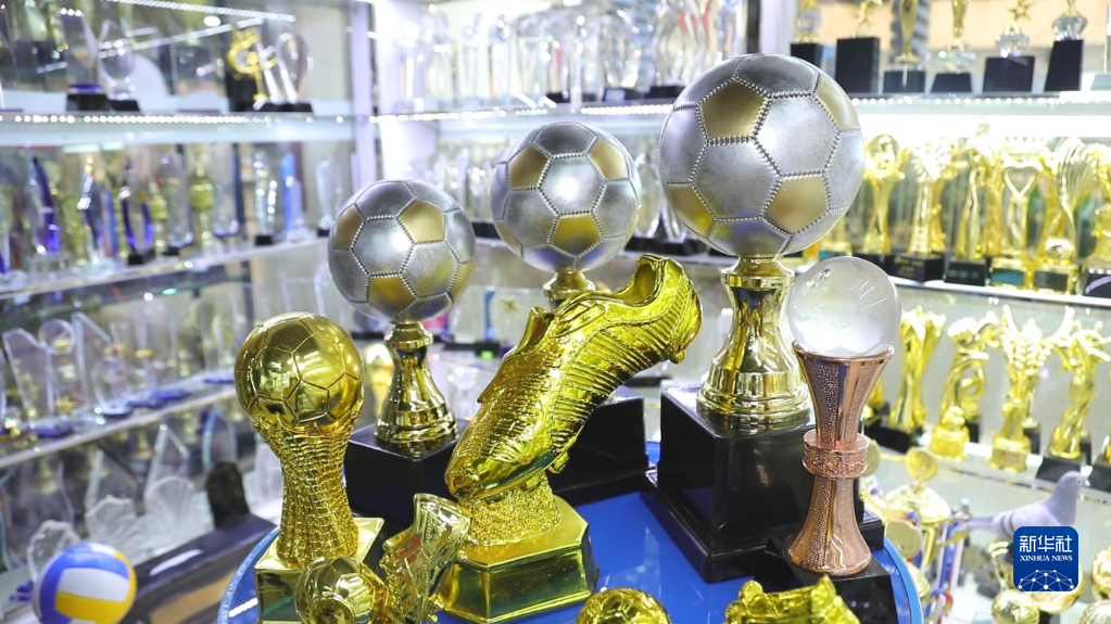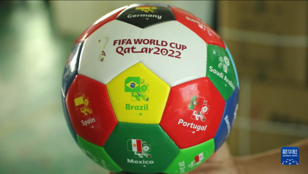 据义乌体育用品协会估算,从卡塔尔世界杯32强的旗帜到加油鼓劲的喇叭、哨子,从足球到球衣、围巾,到大力神杯的摆件和抱枕,义乌制造几乎占到整个世界杯周边商品市场份额的70%。