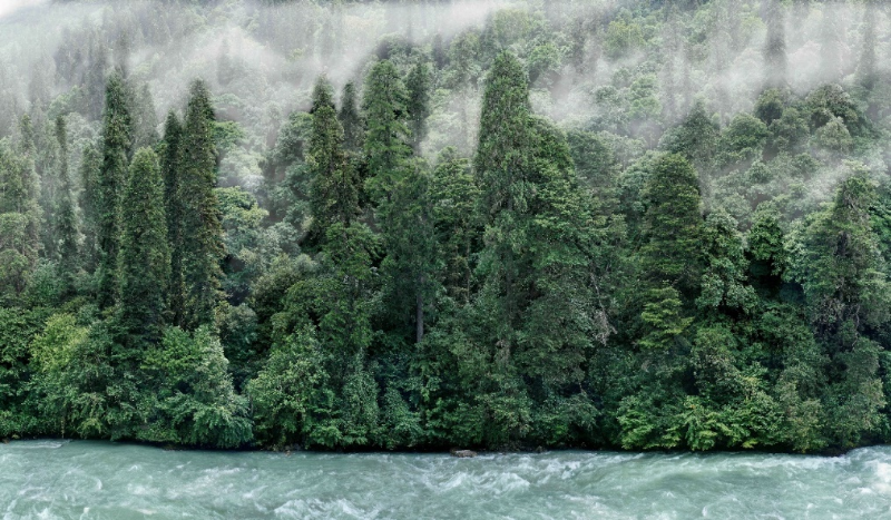 察隅河岸畔的巨树群落。摄影及合成:“野性中国”工作室团队。