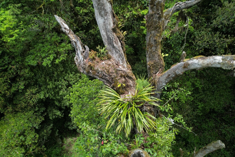 空中俯瞰巨树群落的虎头兰,生长在30米高的巨树上。今年8月,科考队员、中科院植物研究所博士研究生王孜拍摄。