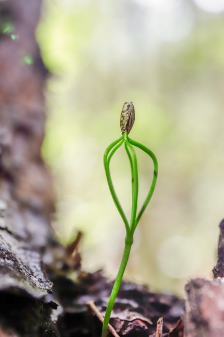 巨树群落中的华山松幼苗。科考队员、中科院植物研究所博士研究生王孜拍摄。