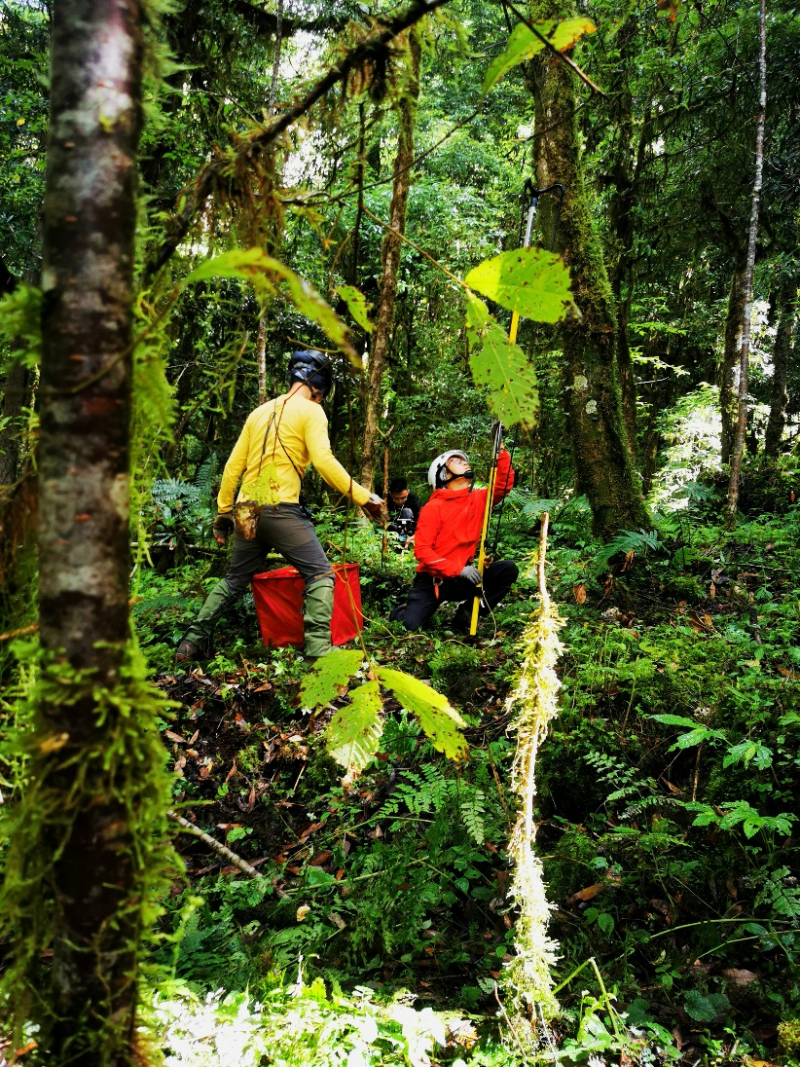 今年8月,中国巨树科考队赴上察隅镇,对5月发现的这棵云南黄果冷杉进行了人工攀树测量和区域调查,并结合无人机辅助测量,最终将这棵树的准确树高定格在83.4米。这也是中国第一次对80米高以上的巨树树冠层进行攀测、摄影和种质资源采集的综合科考,是第二次青藏科考“森林和灌丛生态系统与资源管理”专题的重要组成,也是国家重要野生植物种质资源库野外种质资源采集工作的重要内容。这是继中国西南野生生物种质资源库对高黎贡山72米秃杉攀登采集之后,国家重要野生植物种质资源库进行种质资源收集的第二棵创纪录巨树。