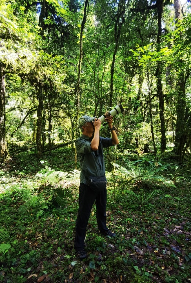 科考队员、“野性中国”工作室创始人、著名野生动物摄影师奚志农在拍摄现场。