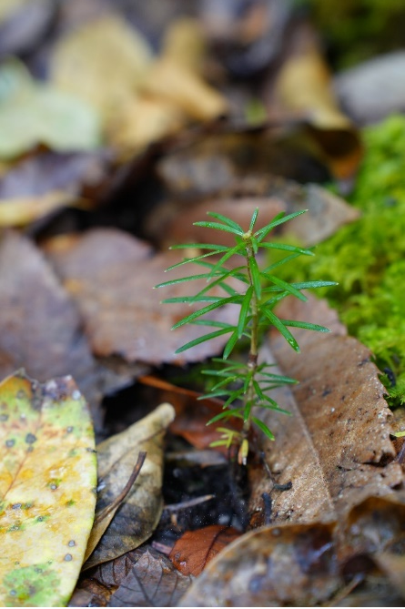 巨树群落中的云南黄果冷杉的幼苗。科考队员、中科院植物研究所博士研究生王孜拍摄。