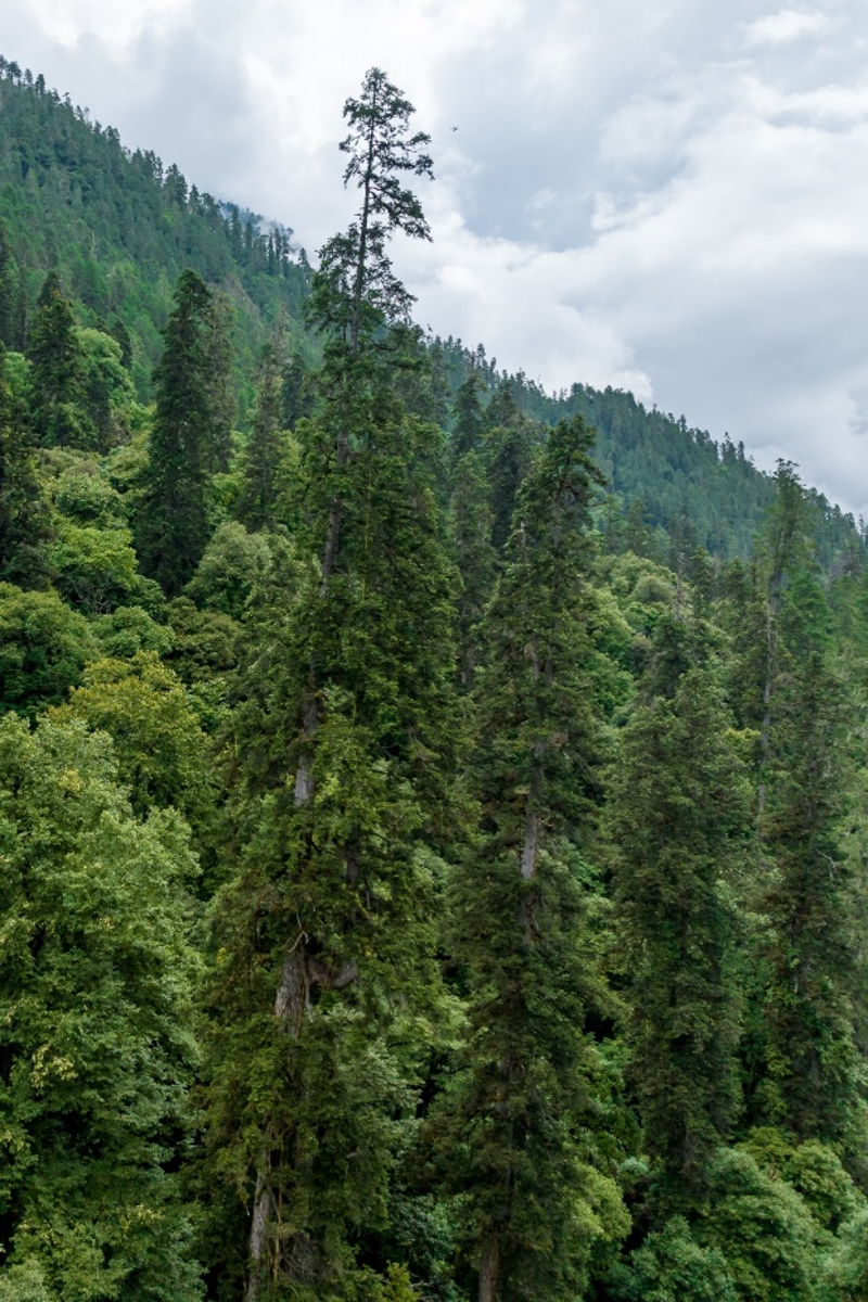 今年5月,中国科学院植物研究所郭柯研究员团队对上察隅镇布宗村巨树群落进行植被调查,连续发现多棵高75米以上的巨树。其中一棵云南黄果冷杉经过无人机初步测量达到了83.2米,超过了分布于云南省贡山县的72米秃杉、西藏自治区墨脱县的76.8米不丹松,以及台湾南投县的81米秃杉的测量记录,作为“第二次青藏科考”重要成果被媒体广泛报道。