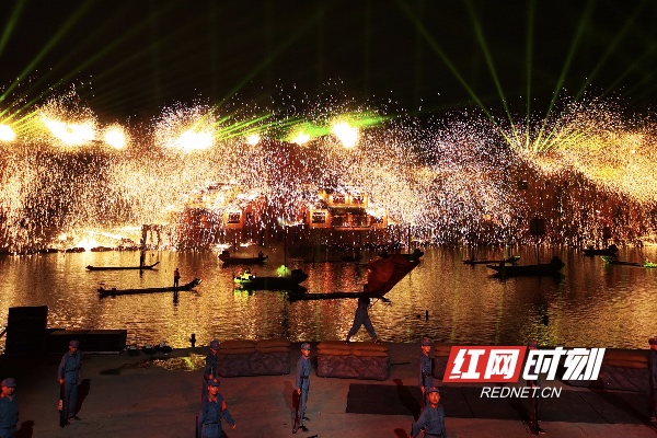 道林古镇主题剧目《千年铁魂·湖南人》,主打节目为享誉国内的国家级非物质文化遗产“打铁花”。