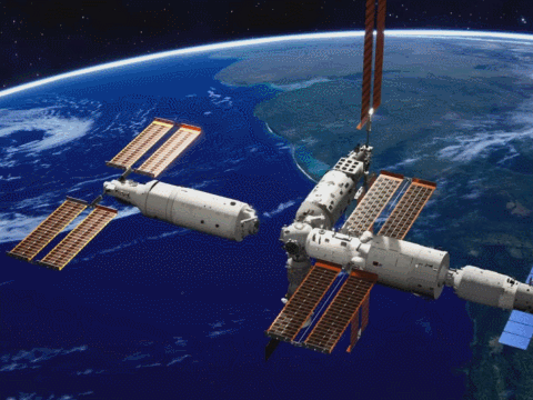 梦天实验舱与空间站组合体交会对接示意动画。本文图片 中国航天科技集团供图