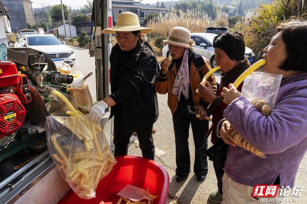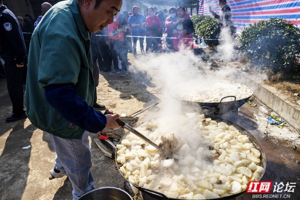 外地游客登记后可免票游临湘所有景区一年。此外,直播带货区推广腊肉、笋干等特产,电力公司也设点帮助老人缴电费。这场纯靠网友发起、村民协作的盛宴,没有复杂流程,却让三千人吃得热闹、玩得安心,不仅传递了地道的湘北风味,也让更多人看到了乡村自身的活力与温度。