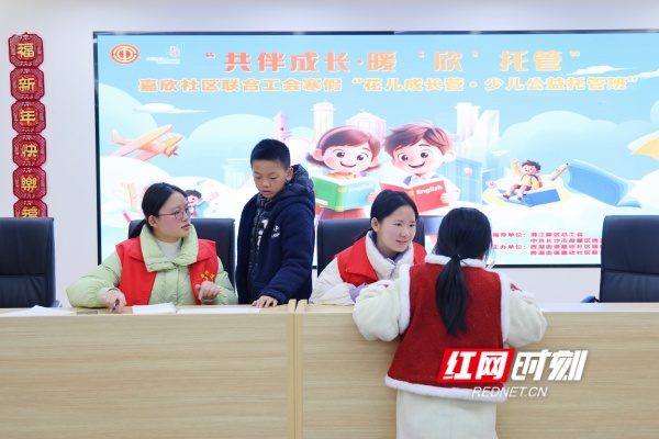红网时刻新闻1月27日讯(记者 贺卫玲)1月26日,湖南湘江新区西湖街道嘉欣社区“花儿成长营 寒假爱心托管班”正式开班,50名职工子女在工会组织下迎来寒假托管首日。今年,长沙各级工会在全市范围内全面启动寒假爱心托管服务,累计开放70余个班次、约3000个托管托位,服务对象覆盖包括快递员、外卖配送员、网约车司机等新就业形态劳动者在内的广大职工家庭。