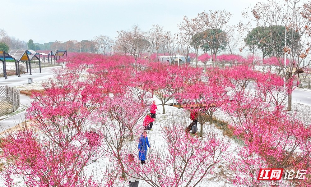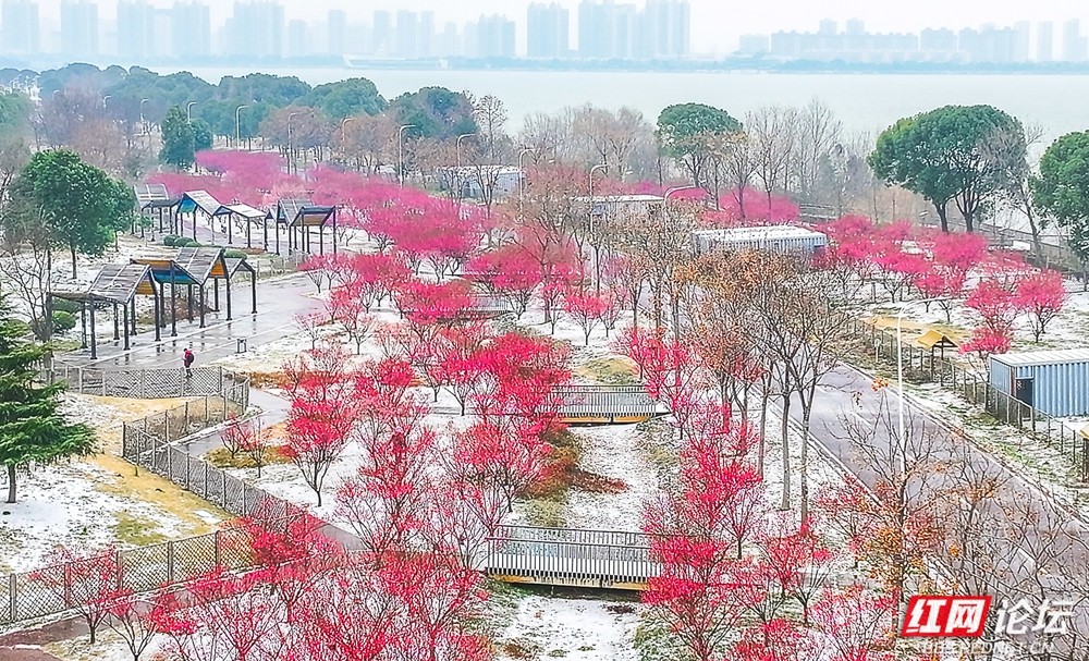 2026年的第一场雪,如约而至,羞答答地亲吻着常德城。不是春色,胜似春色。漫天的琼花飞舞,将那压满枝头的红梅轻轻包裹,红与白的交织,是冬日里最惊艳的调色盘。游人踏雪而来,眉眼间尽是藏不住的笑意。若是能醉,便醉在这初冬瑞雪的温柔里,静看这一城素白,一抹嫣红。(图文/宋才华)