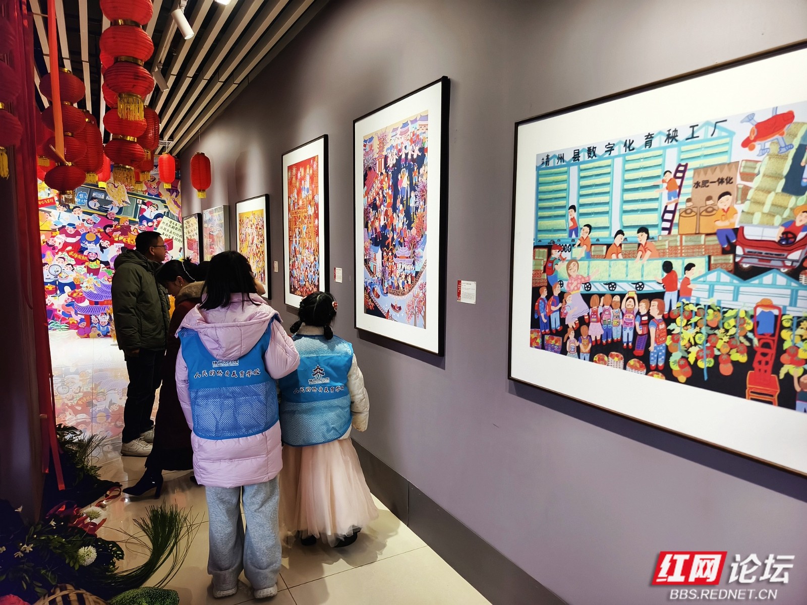 公益拍摄区内,志愿者为多代同堂家庭定格团圆瞬间,市民可现场领取照片与电子档;农民画展同步启幕,一幅幅色彩鲜亮的作品描绘苗侗幸福生活和乡村振兴新貌,志愿者化身讲解员为参观者解读家乡故事。