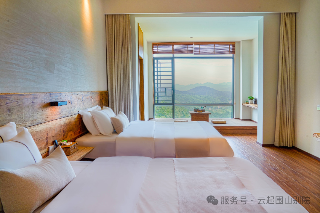 民宿使用水均取自大围山天然山泉水,室内家具采用原木材料,由传统工匠以卯榫工艺打造,按五星级酒店标准配置布草。云起民宿给客人以返璞归真的舒适体验,无论是三五知己,沐浴清风论道品茗,还是亲密情侣,拾级青阶软语轻声,亦或举家团聚共享天伦之乐都是最佳选择。