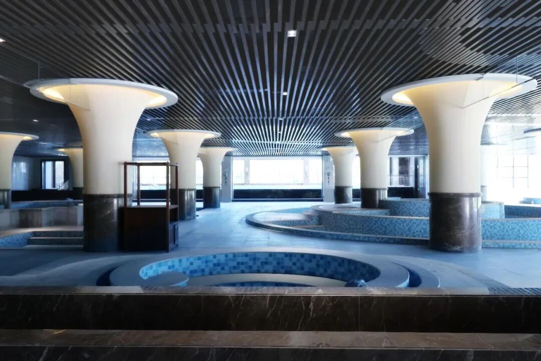 酒店的温泉,才是真正的重头戏。“泡进去,疲劳一下子就散了。”很多客人这么说。这里用的是全国都少有的麻林温泉。水中富含氟、硅、钙等20多种微量元素,是名副其实的“天然养生汤”。