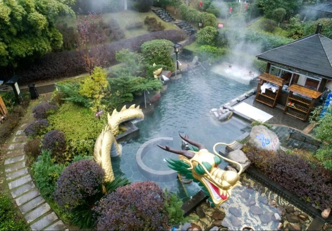 紫龙湾温泉属于AAAA级旅游景区,倚巍峨苍翠的东鹜山。度假区还根据时辰和五行原理在汤池内添加不同的中草药,户外旅游和泡汤体验度拉满。