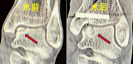 手术当日,在麻醉科团队的密切配合下,张克祥带领手术团队先通过关节镜彻底清理踝关节内增生滑膜及疤痕组织,再使用3D打印导板于内踝截骨,显露软骨损伤区并彻底清理病灶组织;随后,从患者自身髂骨提取带骨膜的骨栓,将其植入距骨软骨损伤处,整个手术过程顺利,患者术中生命体征平稳。术后,在护理团队的精细化理疗与康复指导下,患者踝关节疼痛症状显著缓解,目前已逐步进行功能锻炼,患者对治疗效果非常满意。