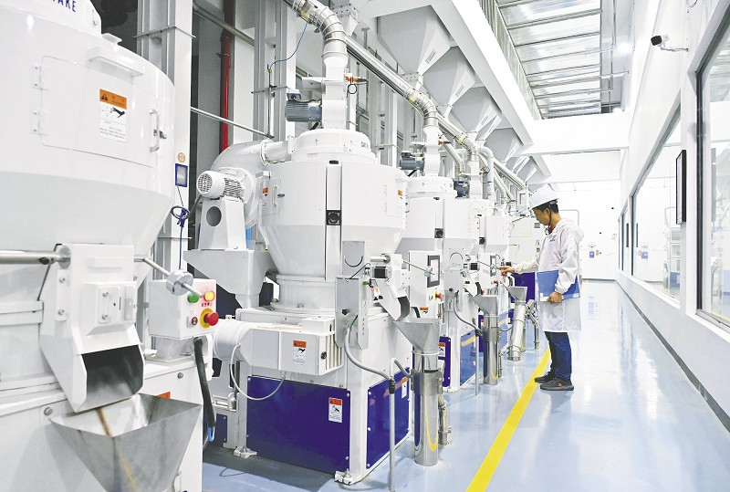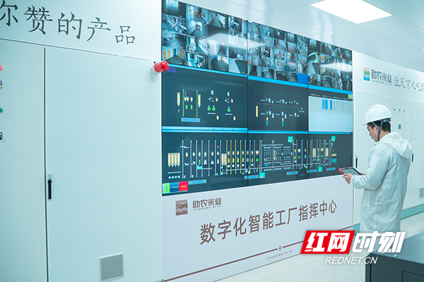 ▲工作人员在智能化稻虾米加工生产线巡视,察看大米白度、碎米等碾米情况。(图源:中国益阳门户网)