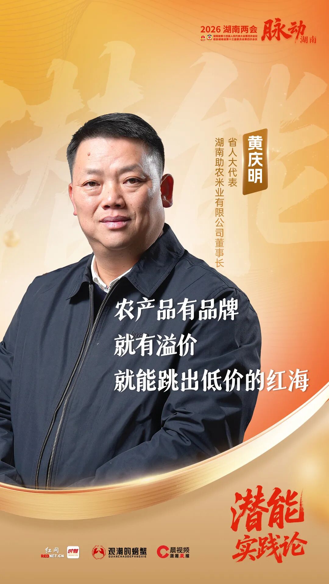 黄庆明是湖南助农米业有限公司董事长,眼下,他作为省人大代表正在参加2026年湖南省两会。