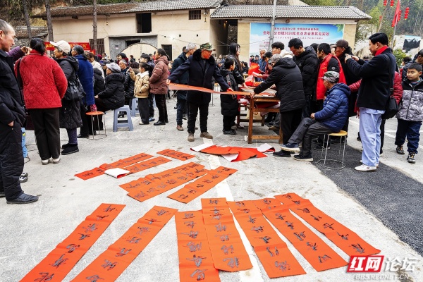 活动现场,民俗氛围拉满,民俗节目展演率先点燃全场热情。铿锵的锣鼓声中,舞龙舞狮表演精彩登场,巨龙腾跃翻滚、雄狮昂首摆尾,表演者们动作刚劲有力、配合默契,引得现场观众阵阵欢呼,掌声与喝彩声此起彼伏,为立春添上了最喜庆的一抹红。民俗美食制作区同样人气爆棚。案板前,大家围坐在一起,揉面、包馅、捏褶,一个个圆润饱满的饺子、汤圆整齐摆放在竹筛中,指尖流转的是代代相传的手艺;打糍粑的木槌此起彼伏,热气腾腾的糯米被捶打得软糯黏滑,裹上黄豆粉,甜香瞬间弥漫全场;一旁的写春联区域,笔墨飘香,爱好者们挥毫泼墨,一幅幅寓意吉祥的春联、福字跃然纸上,为新春增添了浓浓的文化气息。从龙腾狮跃的表演,到舌尖飘香的传统美食,再到墨韵悠长的新春联语,传统年俗在欢声笑语中鲜活传承,勾勒出乡村最动人的烟火图景。
