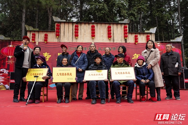 舞台之上,节目轮番上演。没有华丽的布景,却有最真挚的演绎,村民自编自演的歌舞、锣鼓表演铿锵有力,唱出了对美好生活的向往,舞出了乡村振兴的精气神,台下掌声、欢呼声接连不断,热闹非凡。家风表彰环节更是将现场氛围推向高潮,现场为4个百岁健康家庭、4个90岁康泰家庭、8个八旬和美家庭,以及12个书香家庭授牌表彰,各类家风典范同台共庆,一张张荣誉牌,既是对长寿老人的致敬,更是对孝老爱亲、崇文重教优良家风的传承与弘扬,让“长寿”“和美”“书香”成为大段村最亮眼的名片。