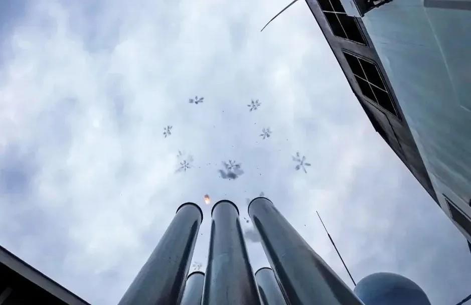 在空中炸开团团“金属云”