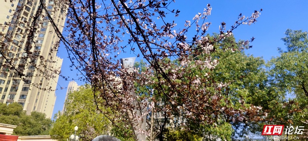 红叶李下:听见春天的呼吸。