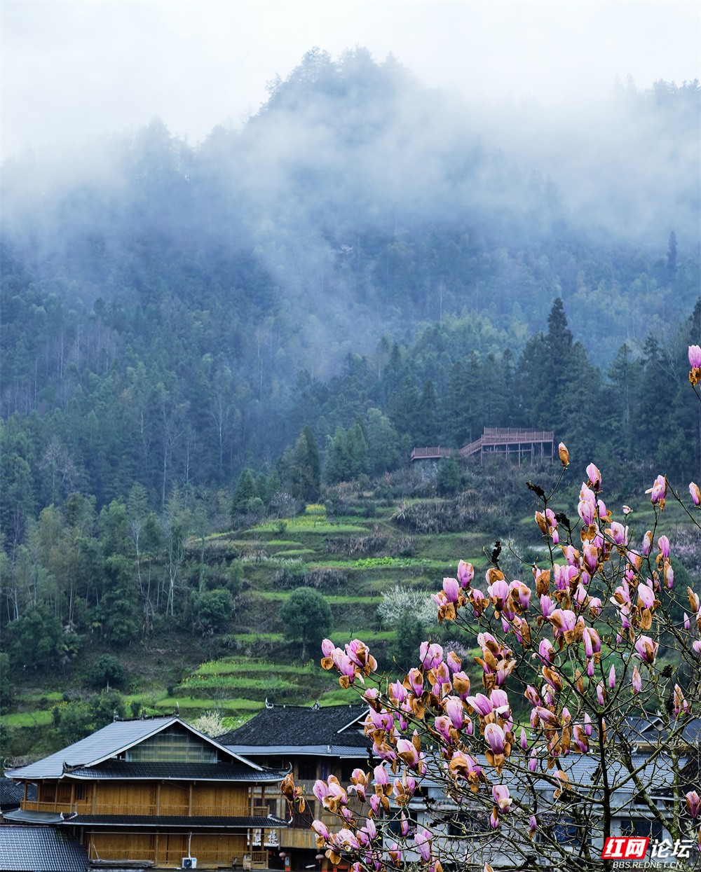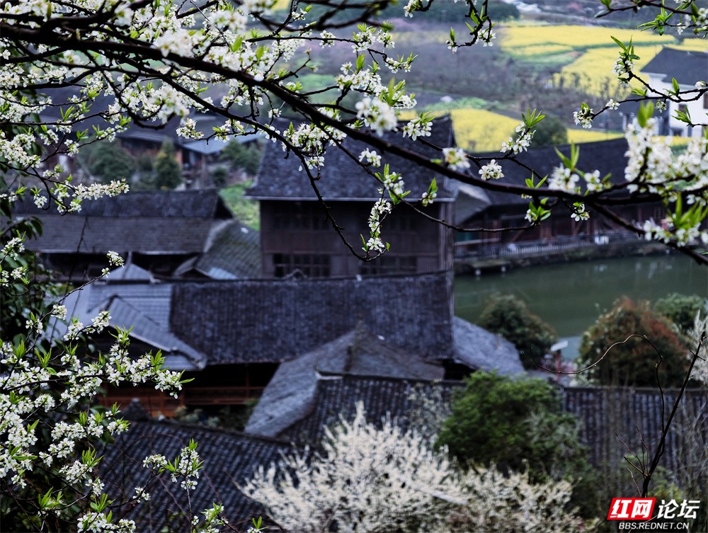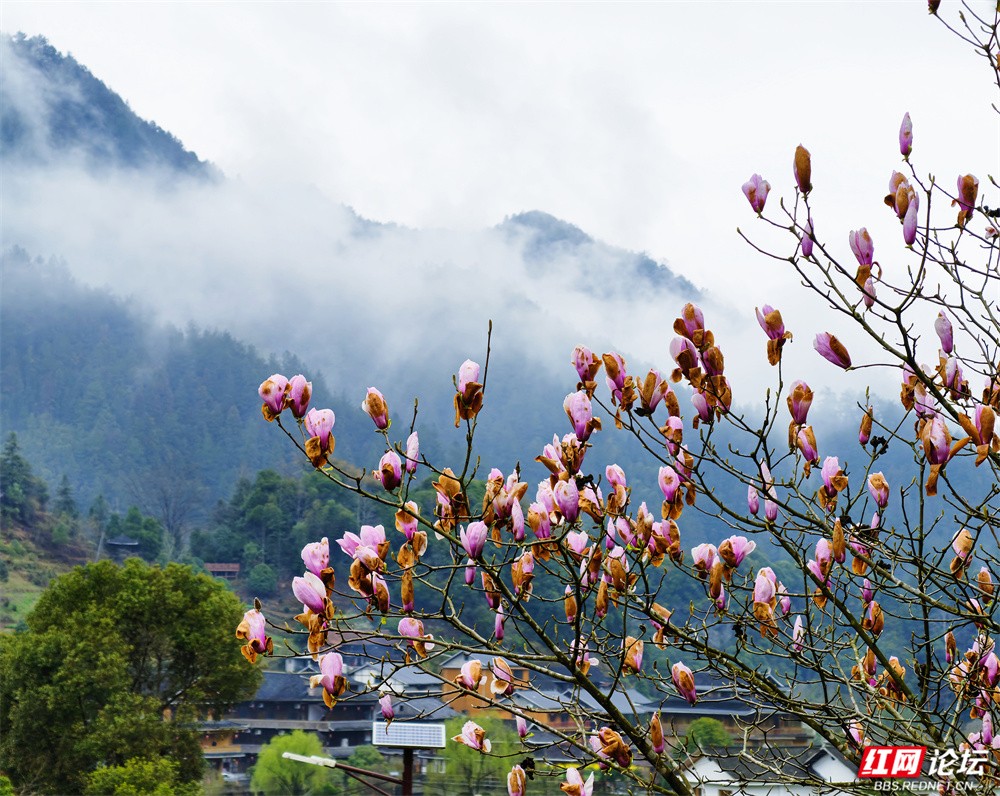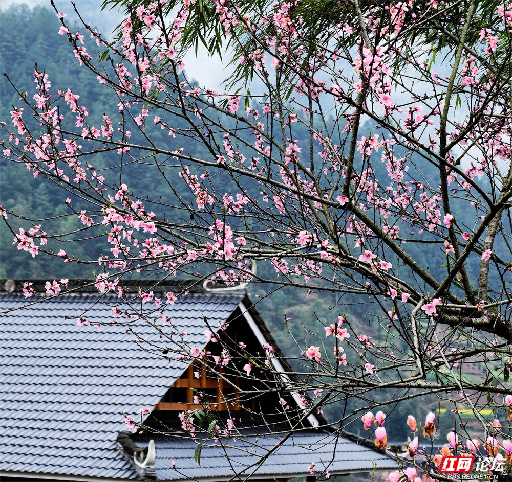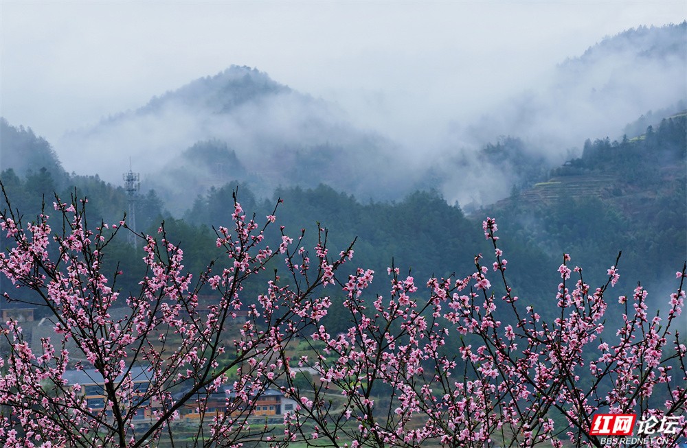 金黄的油菜花沿坡漫开,宛如一席流淌的鎏金绒毯,覆盖着起伏的田畴;粉艳的桃花缀满枝头,灼灼其华,似轻绯云霞缠绕林间;洁白的梨花素雅亭亭,如枝头新雪,清丽动人。樱花浅粉莹白,随风摇曳,姿态温婉;玉兰则高立枝梢,展瓣如盏,气质端雅。各色花姿在此交织,色彩层叠晕染,花香随山风弥漫,与远处青霭缭绕的峰峦相映成画,共同勾勒出这幅令人沉醉的春日山景。(图文/新化县摄影协会 方建宏 张建新 伍湘红 袁平)