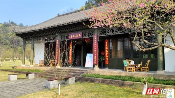 桃花山是桃花源的文脉所在,青山之上,古建林立,碑刻琳琅。方竹亭藏着自然奇趣,亭外翠竹看似圆润,触手方知棱角分明,暗合天圆地方的哲思;碑廊之中,王维、李白、苏轼等历代文人的题咏石刻历历在目,笔墨留香,诉说着千年以来文人雅士对这片净土的向往与眷恋。拾级而上,登至玄亭远眺,漫山春色尽收眼底:桃花灼灼,青山如黛,亭台楼阁点缀其间,如一幅徐徐展开的水墨丹青。