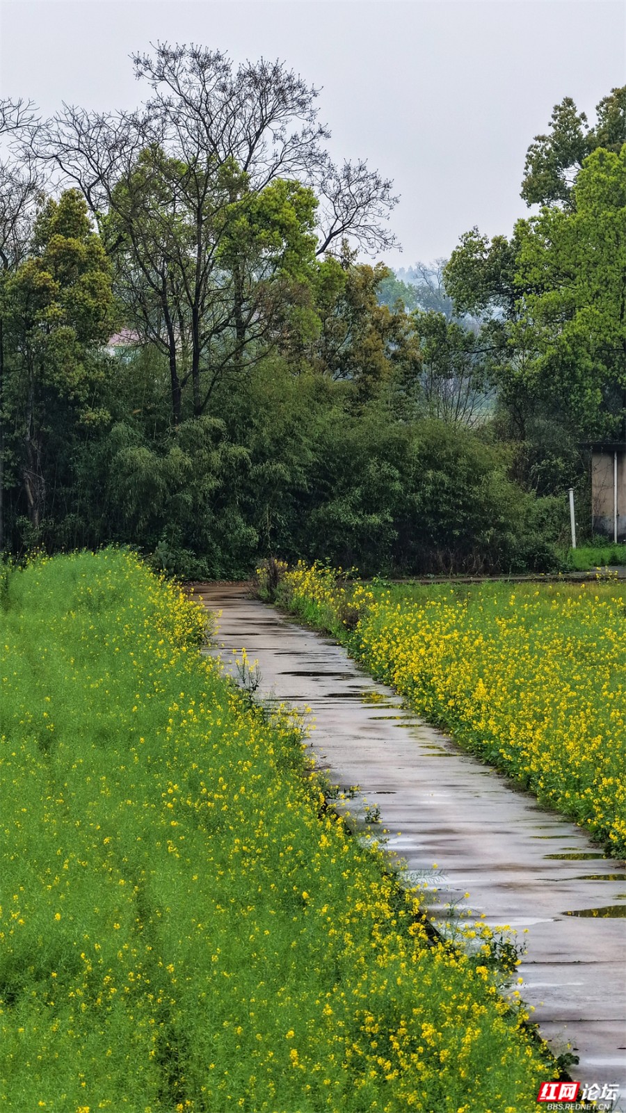 远处是整片整片的油菜花田,金黄与桃红相撞,绚烂到恍惚。偶有老者拄杖徐行,花瓣沾衣,时光也慢了下来。屋舍静立,远山如黛,所有颜色与光线都在说:此刻,是最好的三月。