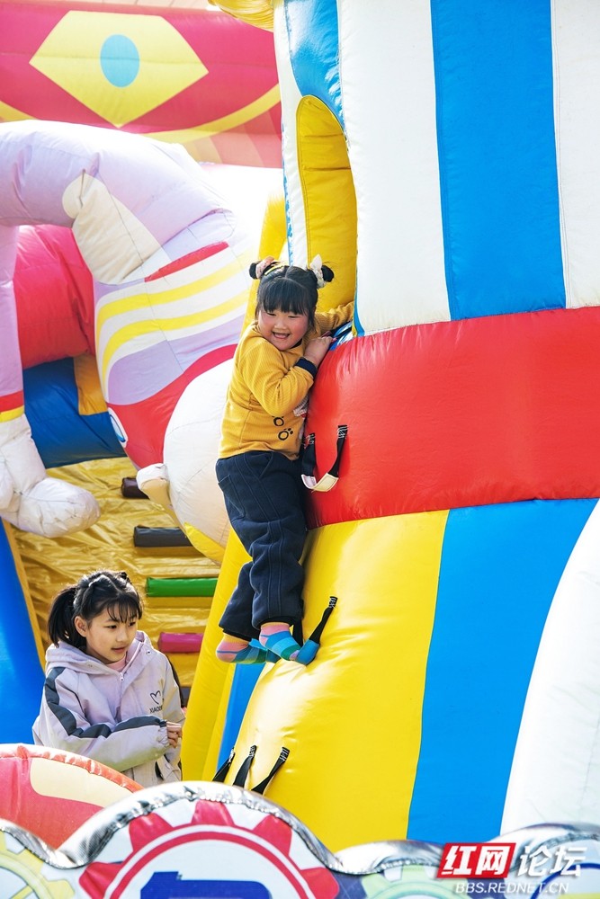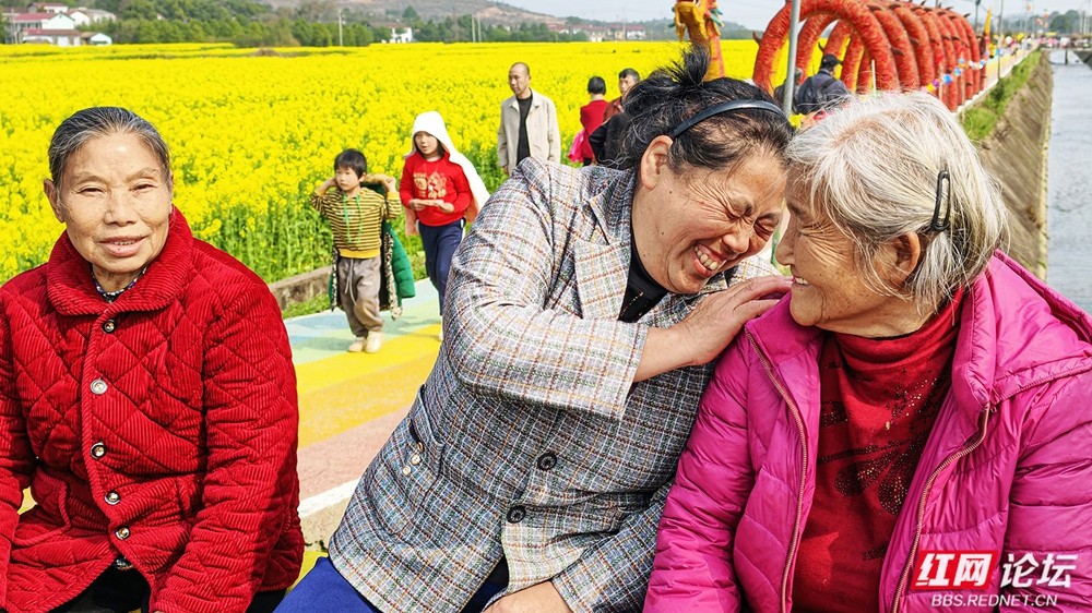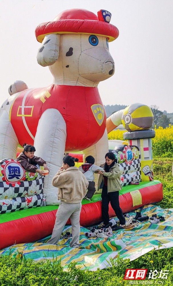 田埂边,白发苍苍的老姐妹们并肩而坐。她们或许在感叹今年的花开得格外繁盛,又或许在低语着岁月的悠长。那一张张布满皱褶的笑脸,在阳光下比花儿还要灿烂、还要真挚。慕名而来的游客们纷纷定格打卡,快门声此起彼伏,试图将这份限定的浪漫装进相框;巨型气球城堡下,承载着无数个家庭的欢声笑语。