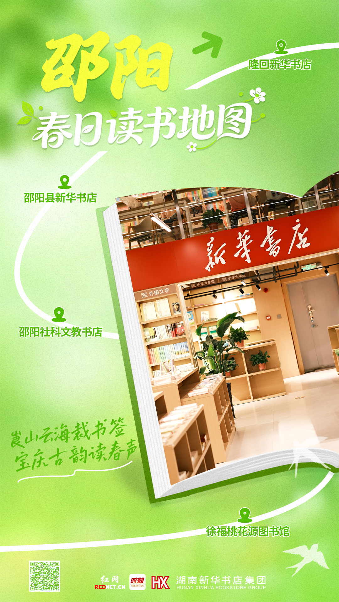 编者按:书香氤氲,浸润三湘。2026岳麓书会虽已圆满落幕,全民阅读的热潮却仍在延续。作为书会系列活动之一,湖南红网新媒体集团携手湖南新华书店集团、湖南省新媒体协会、湖南省青年摄影家协会,共同发起「岳麓书香——拍拍你的书适区」阅读摄影征集活动,让书香融入日常,延续阅读热力。红网从海量投稿中精选14个市州各具特色的“书香地标”,自4月16日起,陆续推出“春日读书地图”系列报道,以脚步为笔,以文字为墨,带你走进那些点缀在繁华街巷,静谧田野、灵秀山水间的阅读空间。