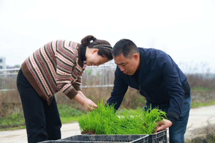 当地农技人员与种粮大户现场查看秧苗质量 供图 新邵县委宣传部