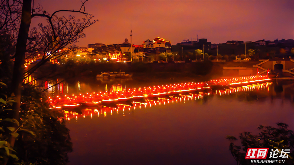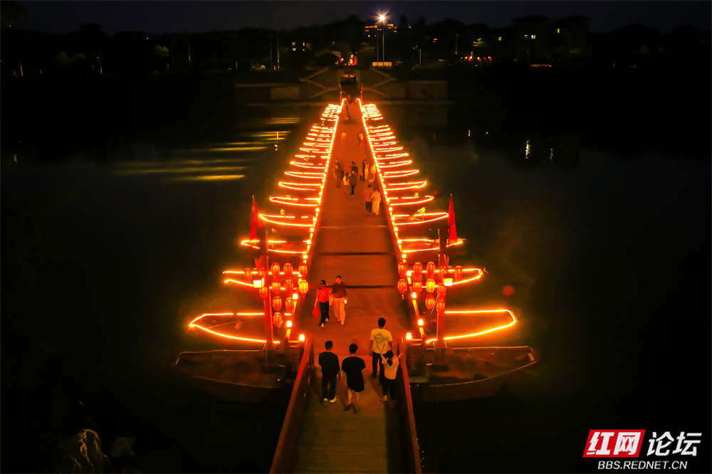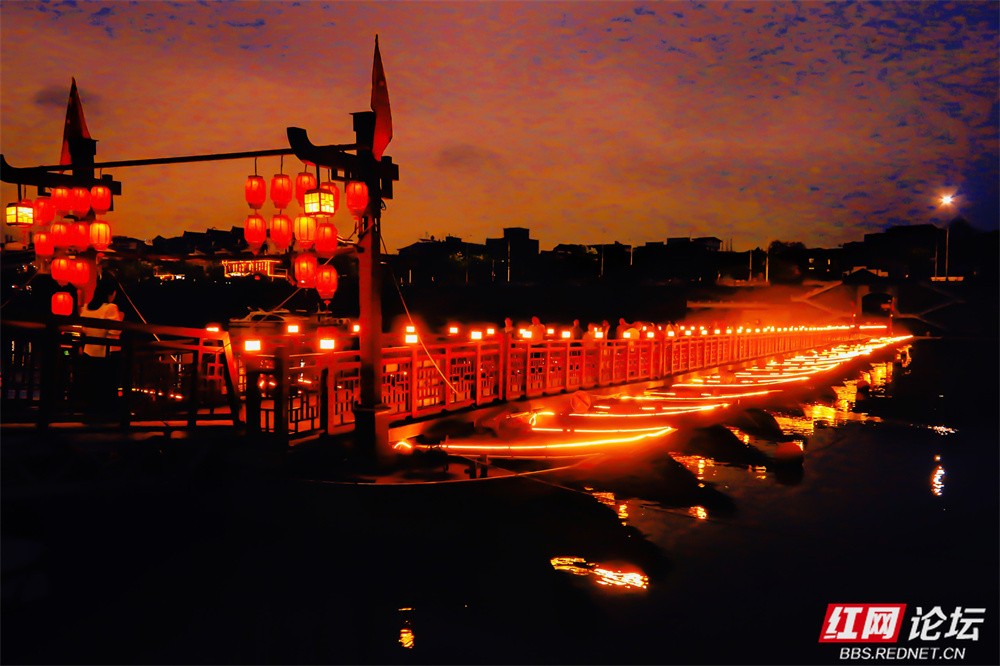 春深时节,零陵处处生机萌动。每当夜色渐浓,潇水之上的霞客渡浮桥便缀满灯火,宛如一串温润的珠链,点亮了古城的夜晚。