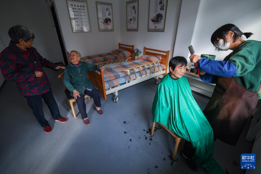 嘉兴市一社区公共开放空间,志愿者为老人理发。图源:新华社