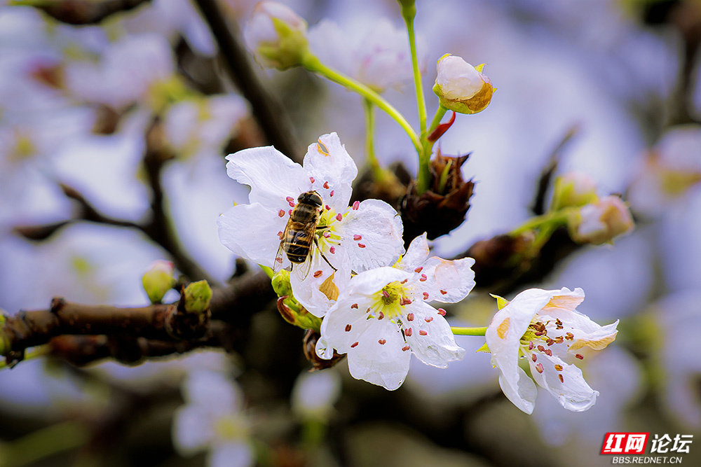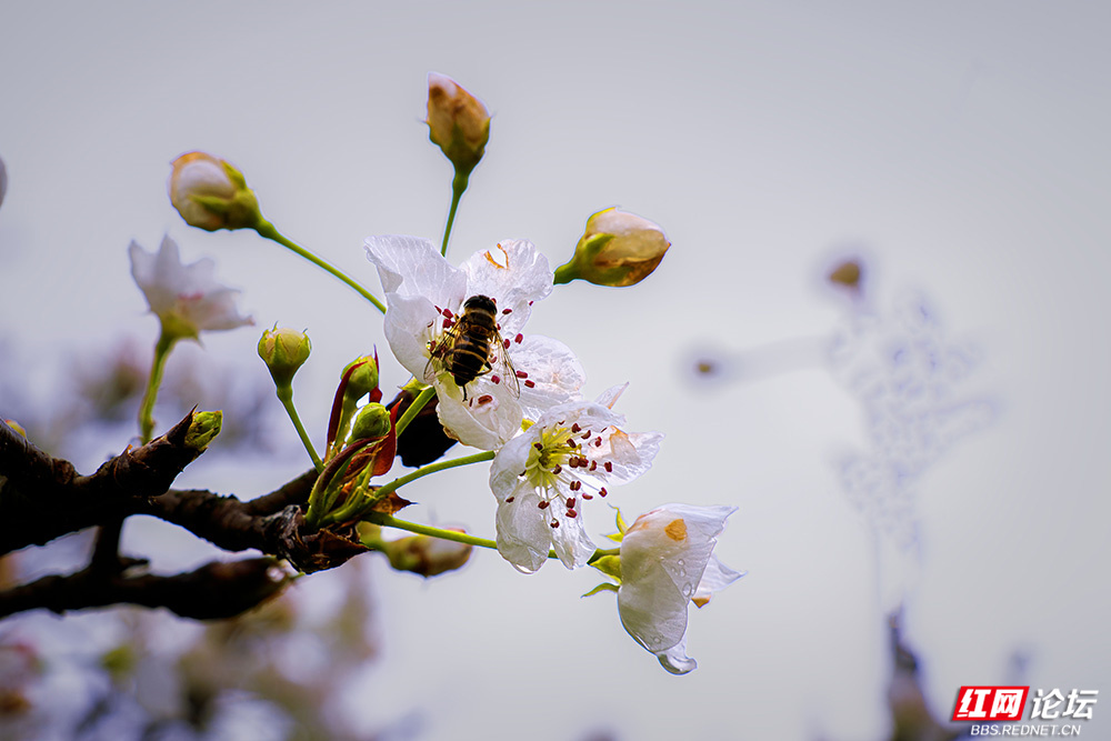 漫山梨花洁白如雪,缀满枝头,清新素雅;桃花灼灼盛放,粉艳动人,暖意融融。清风徐来,花香四溢,引得蜂蝶翩跹其间,山野处处洋溢着盎然生机。