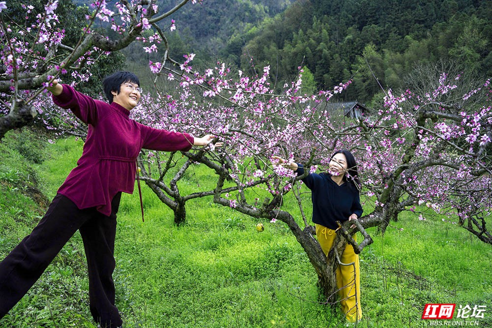 春日,靖州苗族侗族自治县排牙山国家森林公园内繁花竞放。一树树梨花似雪清雅,一朵朵桃花嫣红娇艳,红白相映,交织成湘西南醉人的画卷。