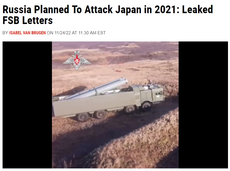 《新闻周刊》24日的报道——俄罗斯2021年计划袭击日本:据泄漏的俄联邦安全局(FSB)的邮件。视频画面是俄罗斯在南千岛群岛部署“堡垒”导弹系统。