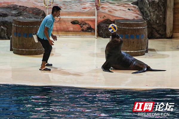 在长沙海底世界,多才多艺的海狮,聪明活泼的海豚,在驯养师的指挥下各显其能。海狮展现了它的各项绝技,海豚更是施展凌空跳跃,高空顶球,骑士表演,空中飞人等动作带给游客一场视觉的盛宴和心灵的震撼!(图文/勤奋向上)