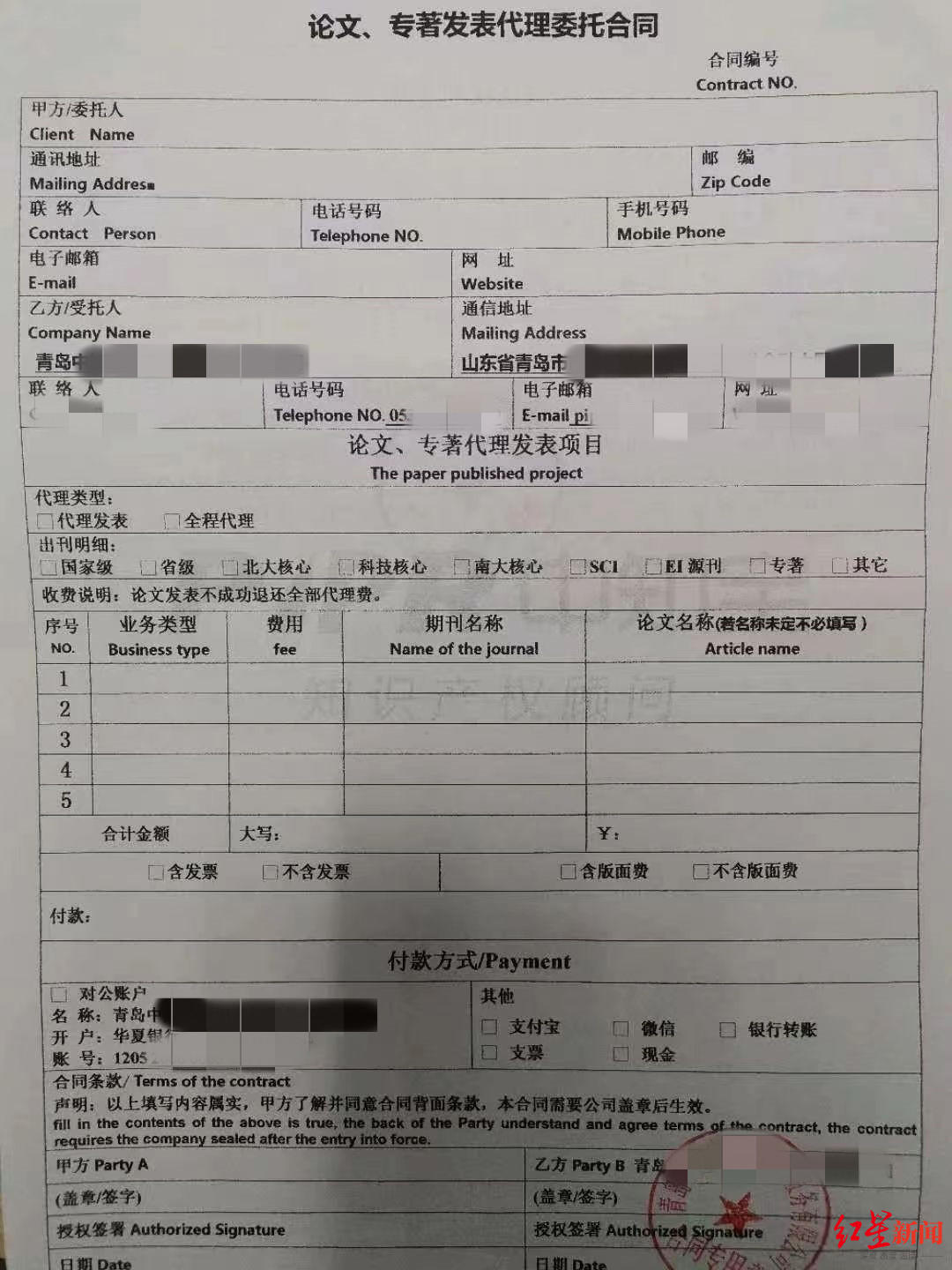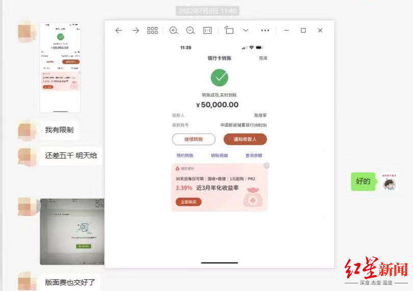 论文代写机构展示给记者的成功案例,客户支付5万尾款