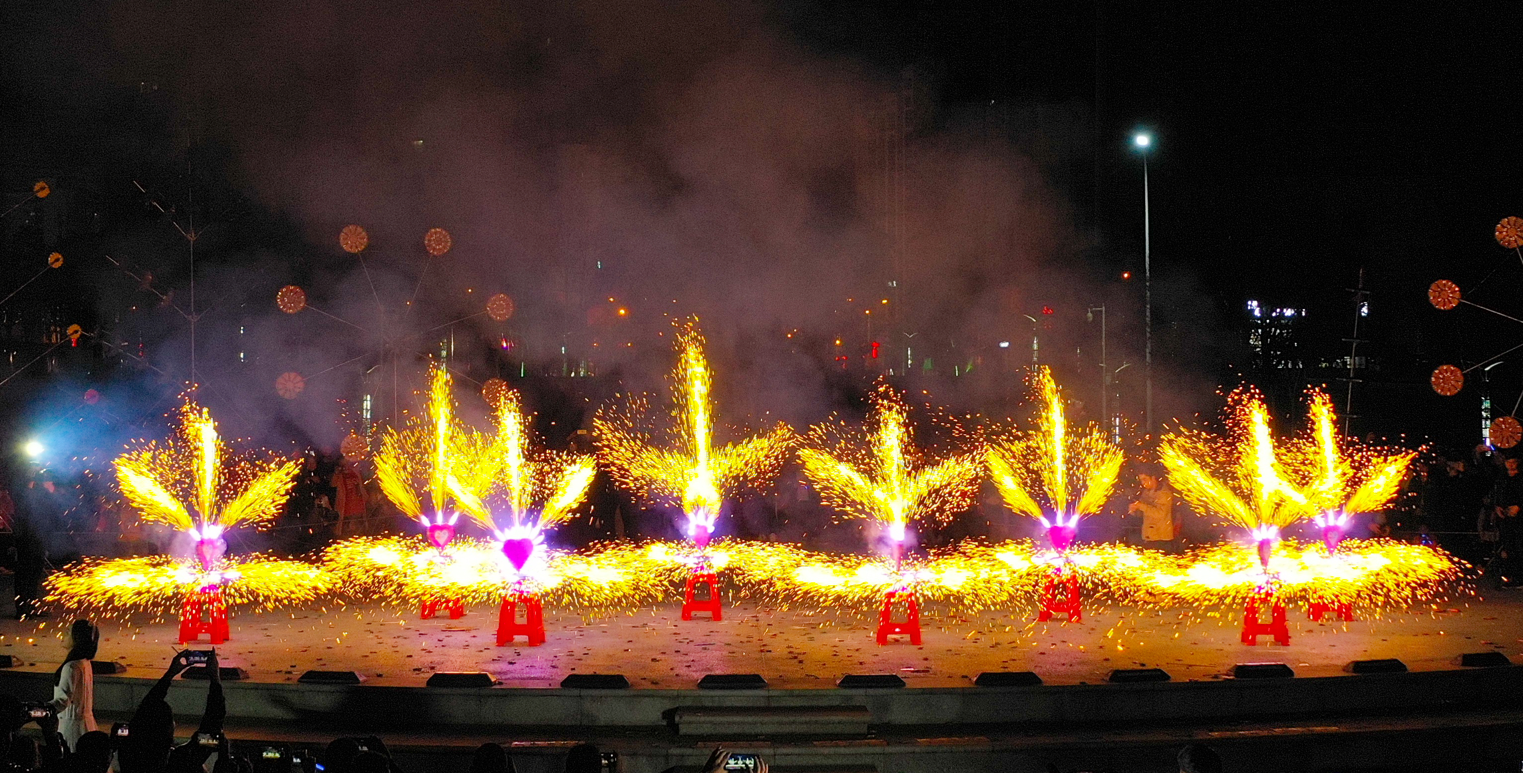 夜幕降临,在城区天空剧院、锦程大道、浏阳河广场、将军路、步行街、花炮广场,在大瑶镇、金刚镇和文家市镇等鞭炮烟花主产区,人们纷纷走出家门,点亮礼花,燃起鞭炮,互道祝福,在漫天绽放的焰火和劈里啪啦的鞭炮声中迎接新的一天。