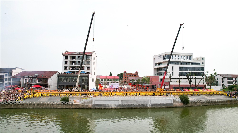 航拍看,更震撼,“航母”级别的龙舟下水是怎样的场面?