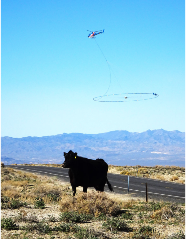 在内华达州,一架牵引着感应线圈的直升机测量了地下电阻。