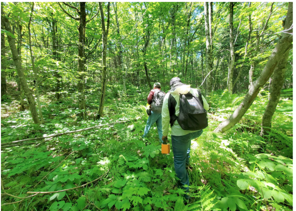 在缅因州,地质学家携带传感器测量岩石的放射性。