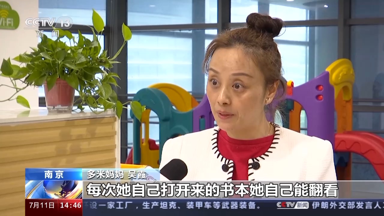 多米妈妈吴霞:每次她自己打开来的书本她自己能翻看,老师都会说她是一个小学霸。包括我最近发现她自己自理能力也在变化,放学以后,自己把鞋拿好了交给老师,自己开柜子拿了以后自己坐好。我们每次过来接她的时候,她每天的变化,我觉得很感动。