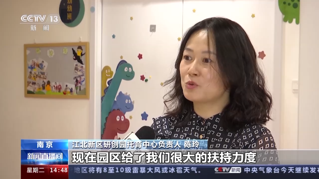 江苏省南京市江北新区研创园综合管理部叶玲:我们当初的这个决定还是做得非常正确的,所以从抚育上确实是帮助很多在园区上班的年轻人解决了非常大的后顾之忧,我们会帮这样的一些民办的托育机构积极去对接省市国家的相关的一些政策,帮助他们减轻一些压力。