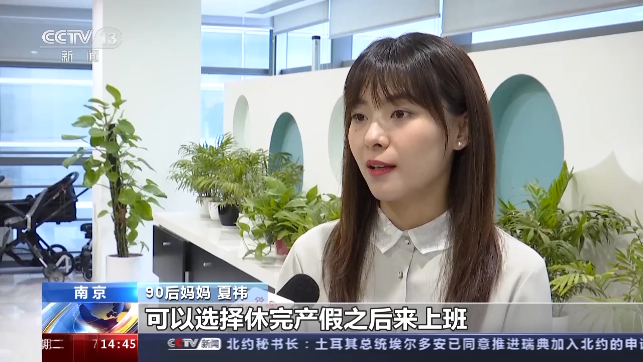 90后妈妈夏祎:我们基本上就是可以选择休完产假之后来上班,然后带着孩子一起来。这样像哈哈刚来的时候有时候会不放心,会过来看一眼什么的都很方便,而且哈哈在成长过程中不同月龄带她去体检,体检的各方面指标真的都非常优秀。你心里作为父母你肯定是开心和自豪的,你说就是觉得我选对了真不错,就真的是由衷地有这样的想法。